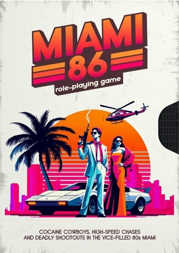 Miami 86 RPG is a rules-light, action-packed role-playing game designed for 2 to 6 players (or more) with solo play options. Immerse yourself in the quintessential 1980s Miami ambiance, inspired by iconic classics like the film Scarface, the TV series Miami Vice, and the video game Grand Theft Auto: Vice City.
