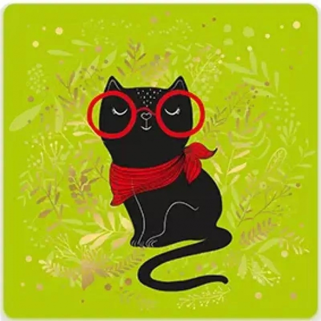 Karnet jednostronny Kot w okularach, złocony, koperta sprzedawana osobno