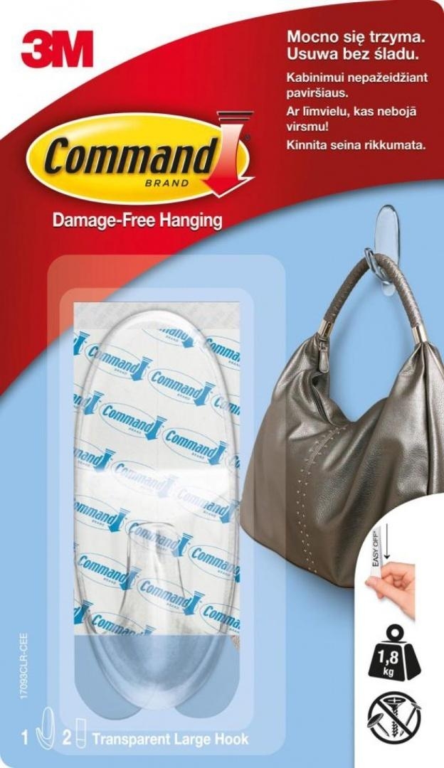 Opis: Hak wielokrotnego użytku samoprzylepny transpar.