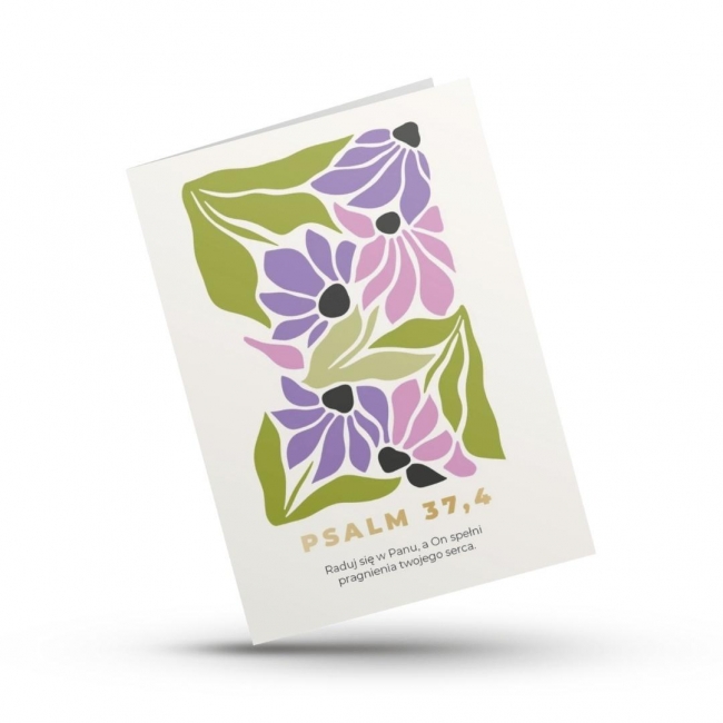 Pełna radości i delikatności kartka z cytatem z Psalmu 37,4:
