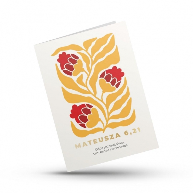 Kartka składana - Mateusza 6,21 | Gdzie jest twój skarb, tam będzie i serce twoje | Złocenie | Papier ekologiczny premium