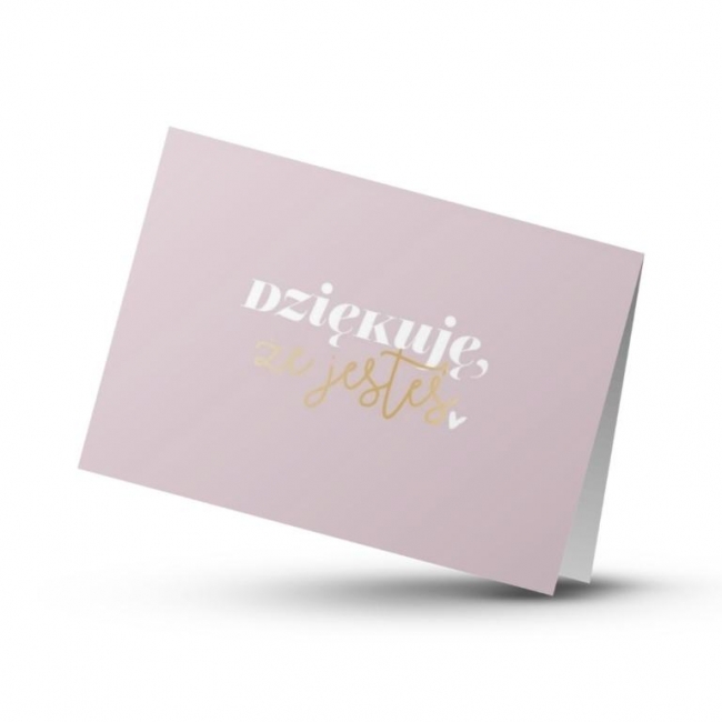 Subtelna i elegancka kartka z napisem Dziękuję, że jesteś, zaprojektowana z myślą o wyjątkowych osobach, którym chcesz wyrazić wdzięczność w piękny, osobisty sposób. Minimalistyczny projekt w odcieniu pudrowego różu dopełniają delikatne złocenia wykonane metodą hot-stampingu, które nadają kartce wyjątkowego blasku i luksusowego charakteru.