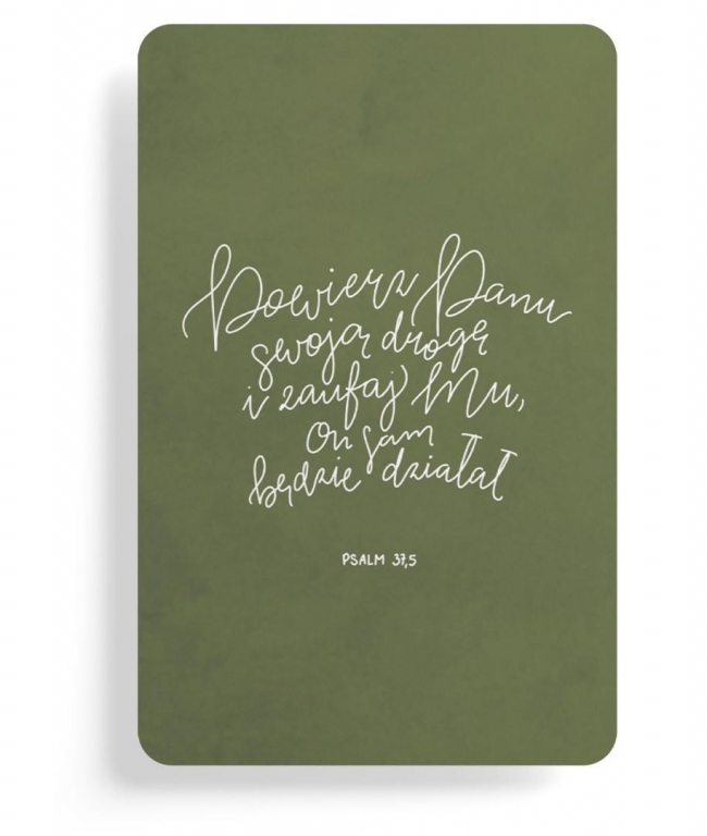 Minimalistyczny magnes na lodówkę w odcieniu oliwkowej zieleni przypomina o zaufaniu Bogu w każdej sytuacji i o Jego działaniu w naszym życiu.Na magnesie znajduje się pełny tekst biblijny: