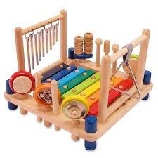Centrum muzyczne w kolorach podstawowych. Zabawka edukacyjna z 14 instrumentami! Zawiera ksylofon, trójkąt i dzwonki.