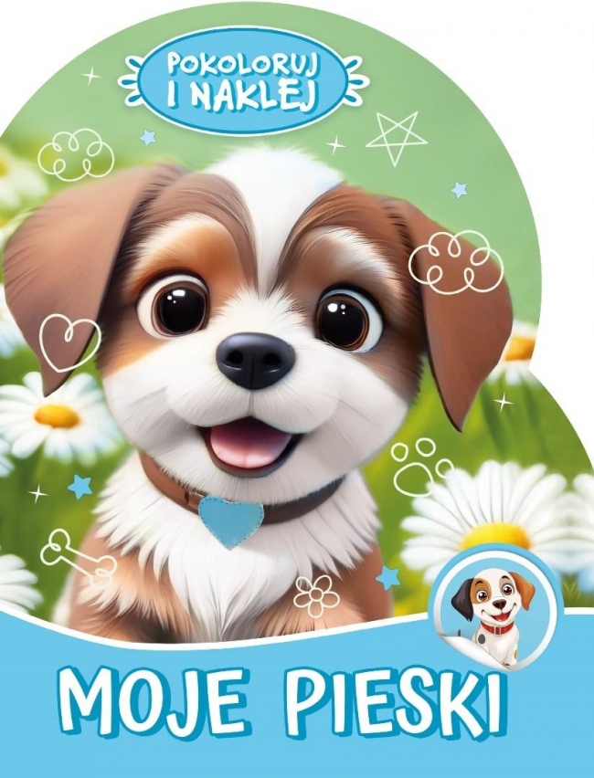 W części Moje pieski mali twórcy spotkają wesołe psiaki - bawiące się, odpoczywające i pomagające swoim opiekunom. Każdy obrazek opatrzony jest krótkim opisem, który rozwija wyobraźnię i pobudza ciekawość. Zestaw uzupełniają piękne naklejki, które sprawią, że kolorowanie stanie się jeszcze bardziej radosne.