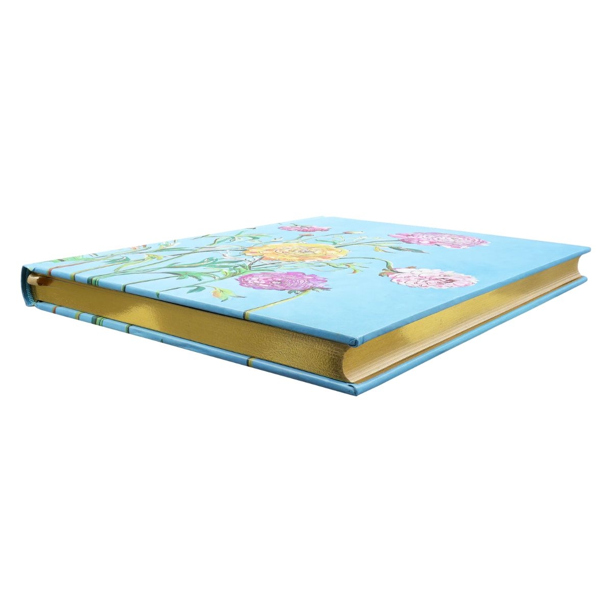 Każdy notes marki Peter Pauper Press jest wyjątkowym dziełem sztuki. Bogactwo motywów i kolorów sprawia, że każdy znajdzie wzór idealnie dopasowany do osoby i okazji. Okładka przedstawia kwiaty kwitnące na tle lazurowego nieba. Notatnik posiada tłoczenia i elementy pokryte złotą folią oraz złote brzegi stron.