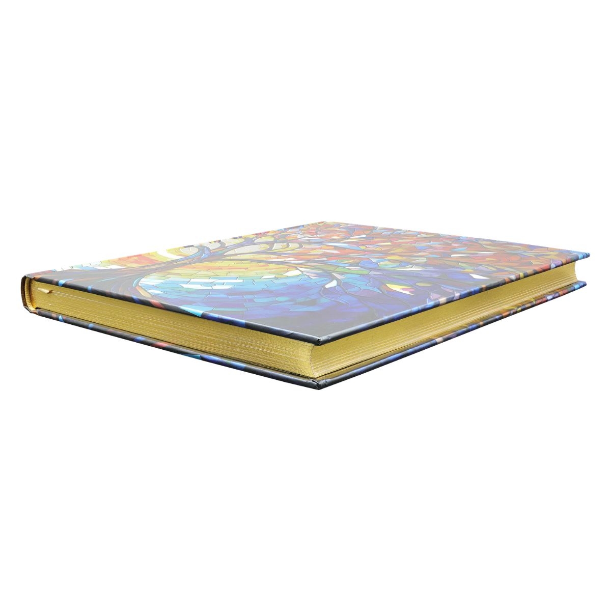 Każdy notes marki Peter Pauper Press jest wyjątkowym dziełem sztuki. Bogactwo motywów i kolorów sprawia, że każdy znajdzie wzór idealnie dopasowany do osoby i okazji. Okładka przedstawia witraż z jesiennym drzewem na tle zachodzącego słońca. Notatnik posiada tłoczenia i opalizujące elementy oraz złote brzegi stron.