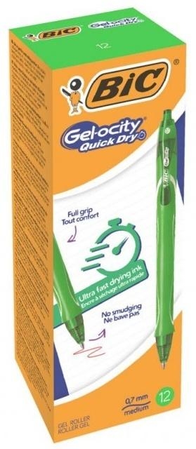 Długopis żelowy Quick Dry 0,7mm zielony (12szt) BIC