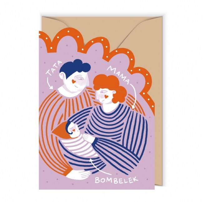 Urocza kartka okolicznościowa zaprojektowana przez Justynę Frączek, przedstawiająca tatę, mamę i maluszka symbol radości z narodzin dziecka. To wyjątkowy sposób na wyrażenie gratulacji z okazji przyjścia na świat nowego członka rodziny. Kartka wykonana została z ekologicznego papieru o wysokiej gramaturze, co gwarantuje jej trwałość, elegancki wygląd i troskę o środowisko. Idealna jako dodatek do prezentu dla świeżo upieczonych rodziców.