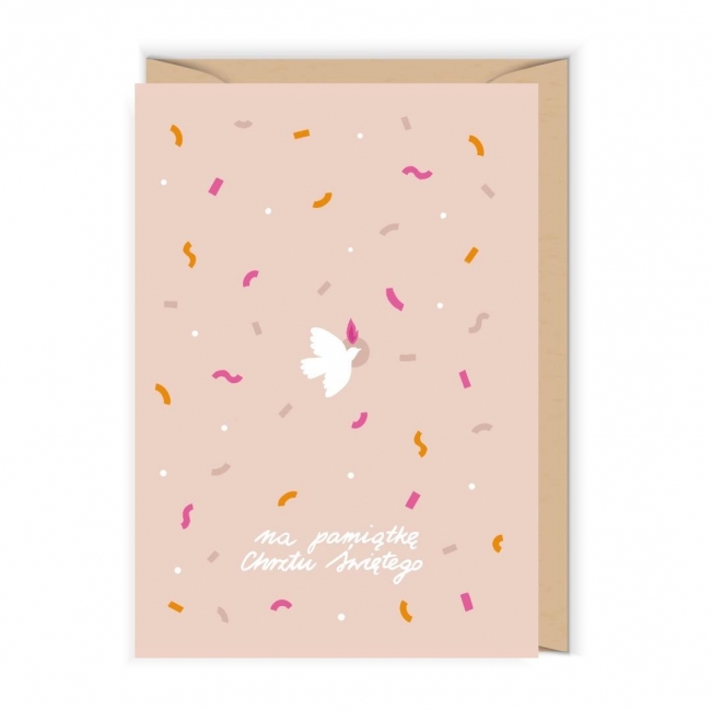 Otwierana kartka, pusta w środku, wykonana na papierze (z certyfikatem EFC) z wyraźnie widoczną fakturą. W zestawie ekologiczna koperta.