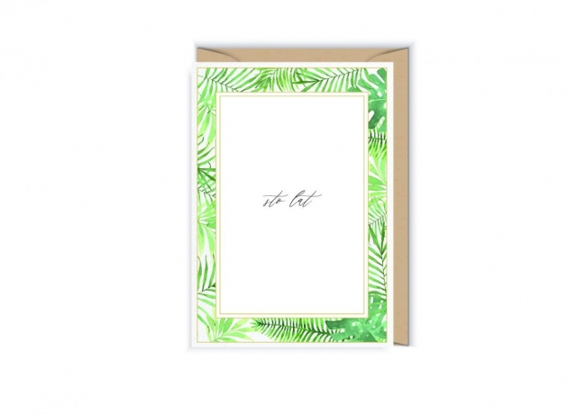 Otwierana kartka, pusta w środku, wykonana na papierze (z certyfikatem EFC) z wyraźnie widoczną fakturą. W zestawie ekologiczna koperta.