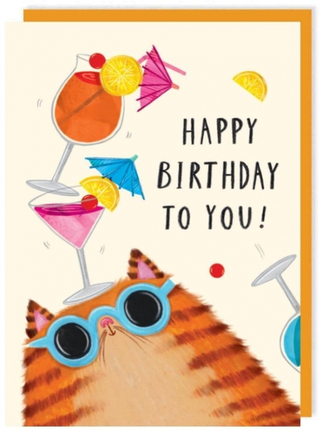 Opis: Karnet 304 Urodziny Kot z kotajlami