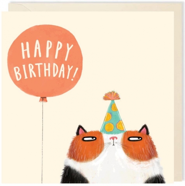 Szczegóły: Karnet kwadrat 008 Urodziny Kot z balonem