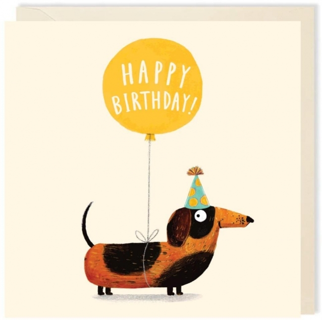 Opis: Karnet kwadrat 011 Urodziny Szczeniak z balonem