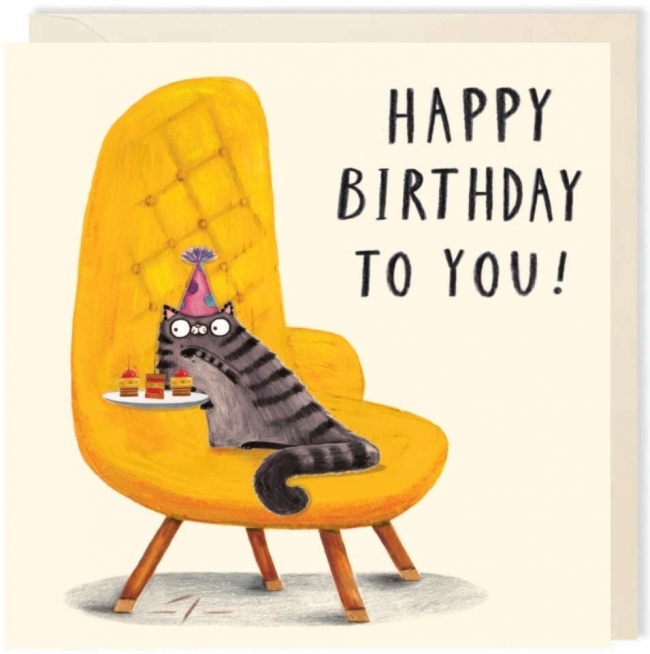 Karnet kwadrat 190 Urodziny Kot z przekąskami