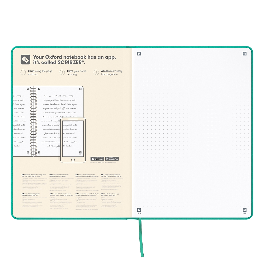 - Tagi w narożnikach stron oraz specjalna aplikacja Scribzee®umożliwiają skanowanie notatek za pomocą urządzeń mobilnych