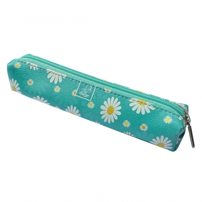 Opis: Piórnik mini prostkąt Stokrotki na turkusie
