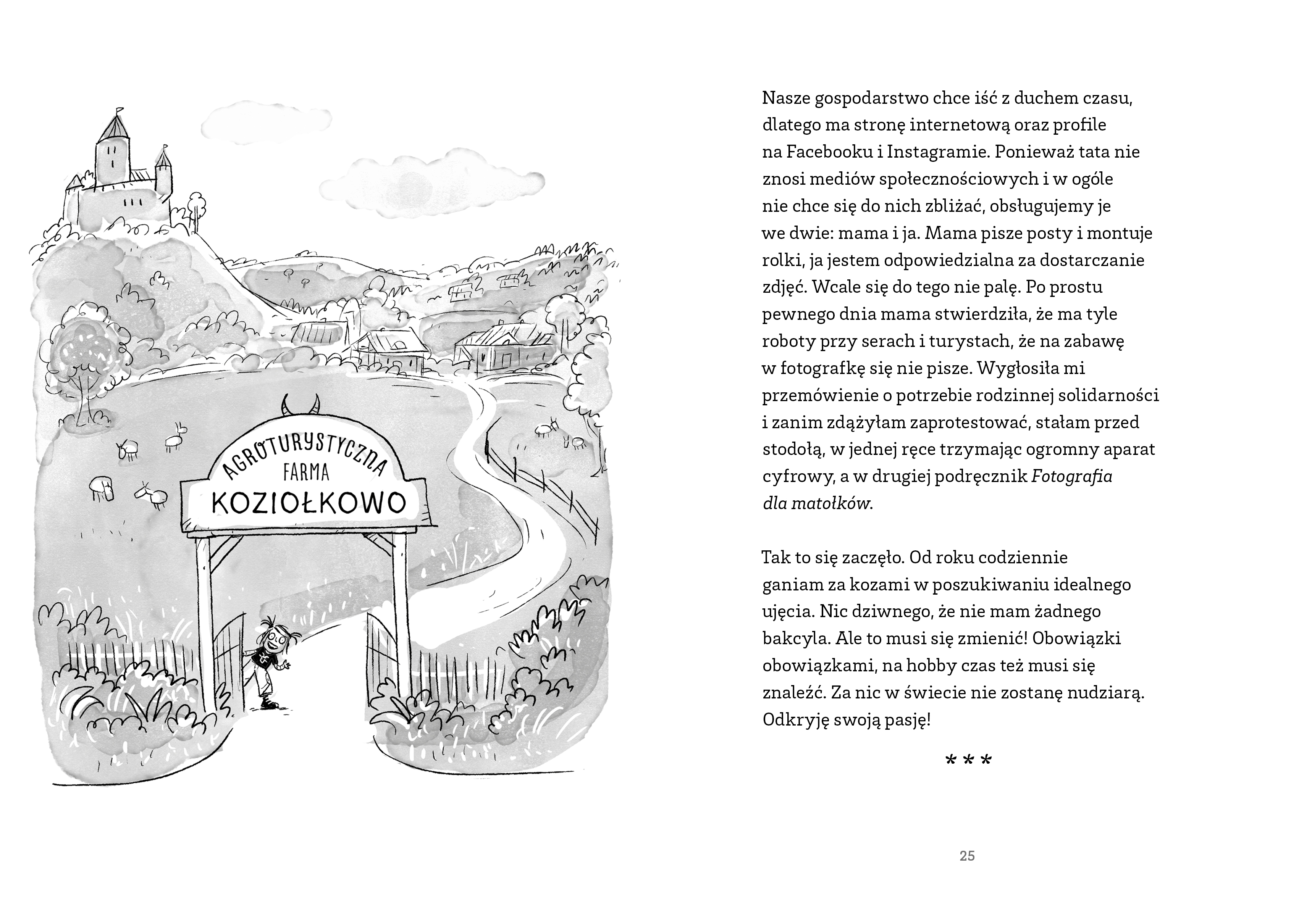 Jakby tego było mało, muszę zdobyć pieniądze na plac zabaw dla kóz, a mama ciągle ściga mnie o nowe zdjęcia, żeby pokazać wszystkim, jaką mamy piękną agroturystykę. Zamiast więc szukać hobby i ratować kozy, latam tylko z aparatem.