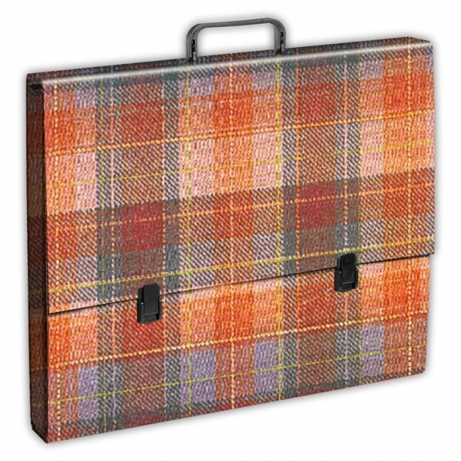Wykonana z tektury 1,7mm, nitowane boki z okleinowanymi krawędziami.Okleina kratka uszlachetniona folią polipropylenową. Wymiary:46x38x5,5