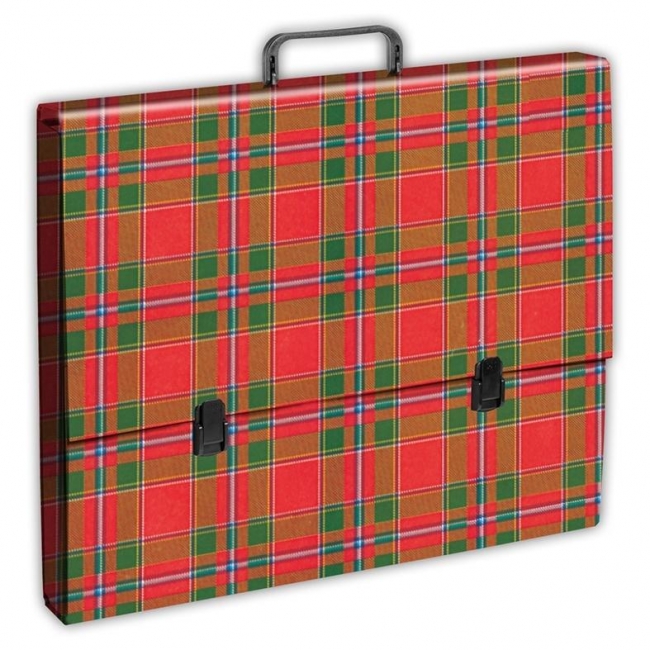Wykonana z tektury 1,7mm, nitowane boki z okleinowanymi krawędziami.Okleina kratka uszlachetniona folią polipropylenową. Wymiary:46x38x5,5