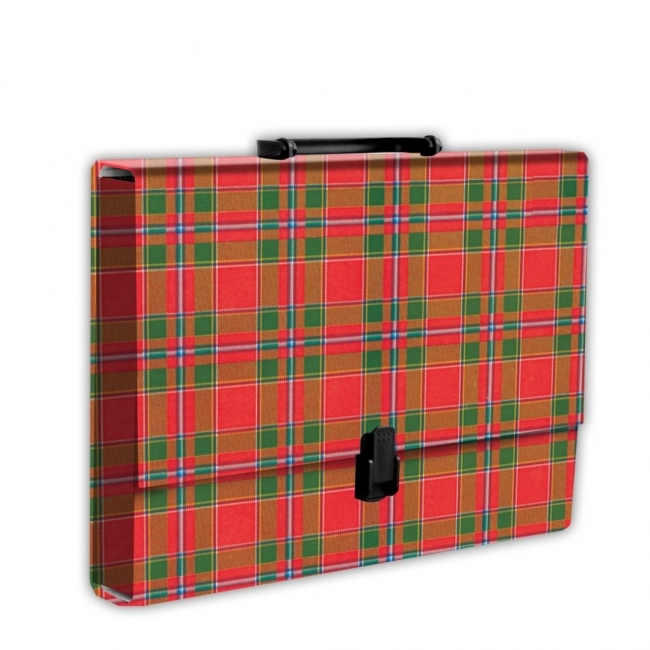 Wykonana z tektury 1,7mm, nitowane boki z okleinowanymi krawędziami. Okleina kratka uszlachetniona folią polipropylenową. Wymiary: 32x23,5x5