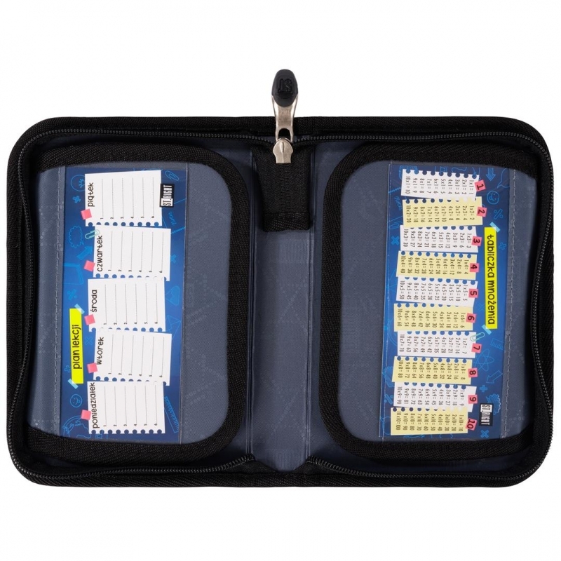 - posiada przegrody i liczne mocowania ułatwiające organizację przyborów szkolnych