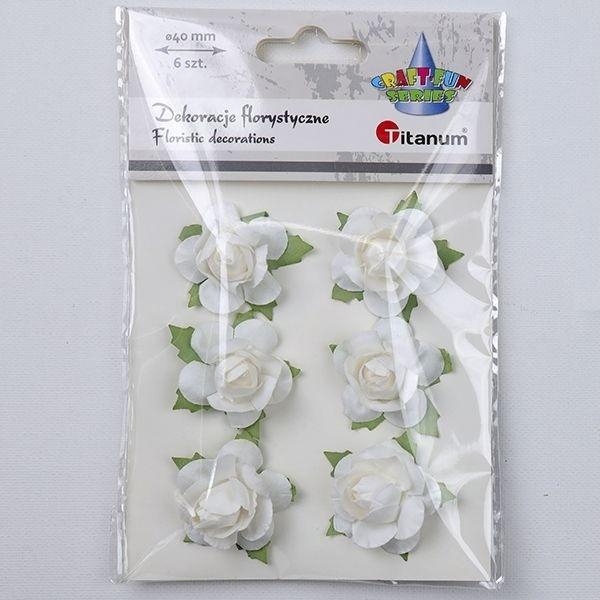 Opis: Papierowe róże na druciku 40mm białe 6szt.