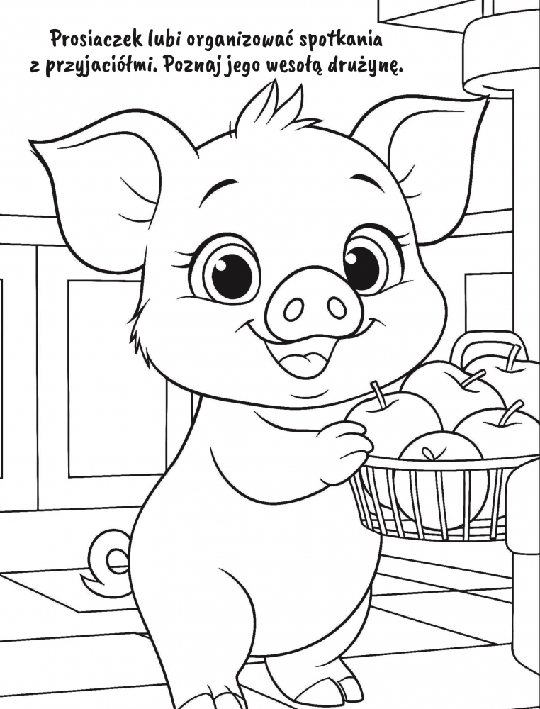 Urządzić przyjęcie, zaprosić na domowe kino, przygotować posiłek – niesforny prosiaczek zawsze coś organizuje. Otwórz książeczkę i poznaj jego drużynę. Dzięki dołączonym flamastrom z łatwością pokolorujesz wesołe obrazki. Na dodatek masz jeszcze naklejki. Dobrej zabawy!Kraj produkcji: PL
