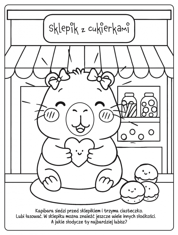 Witaj w kolorowym świecie kapibar. Najsympatyczniejszych, najsłodszych i najzabawniejszych zwierzaków, które zawsze mają dobry humor i lubią się wygłupiać. Dziś zapraszają cię do wspólnej przygody. Dzięki tej kolorowance z naklejkami możesz zamienić zwykły dzień w wesołą, barwną opowieść. Koloruj, śmiej się i baw się świetnie!Kraj produkcji: PL