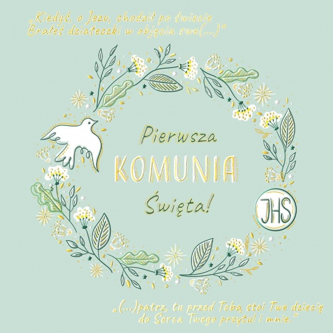 Szczegóły: Karnet A5 Komunia Miętowy gołąbek