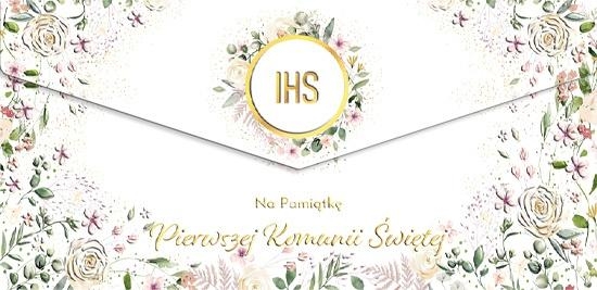 Szczegóły: Koperta Komunia Opłatek w kwiatach
