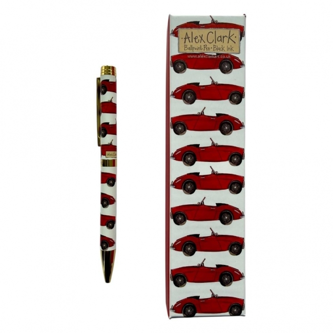 Przepiękny długopis z kolorowym wzorem Alex Clark. Łatwo obracana stalówka pozwala na płynne rozpoczęcie pisania. Posiada wkład z czarnym atramentem. Długopis wykończony jest złotem oraz zapakowany jest w ilustrowane, pasujące wzorem pudełko. Rozmiar długopisu: 140 mm x 10 mm.