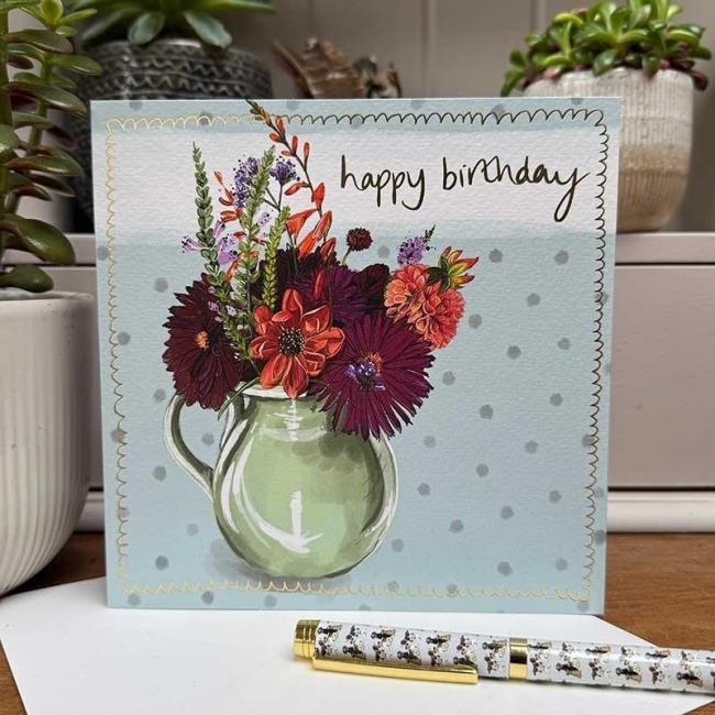Opis: Karnet Urodziny Kwiaty w zielonym wazonie