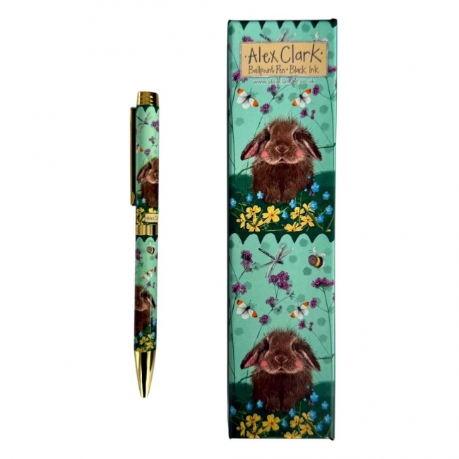 Przepiękny długopis z kolorowym wzorem Alex Clark. Łatwo obracana stalówka pozwala na płynne rozpoczęcie pisania. Posiada wkład z czarnym atramentem. Długopis wykończony jest złotem oraz zapakowany jest w ilustrowane, pasujące wzorem pudełko. Rozmiar długopisu: 140 mm x 10 mm.