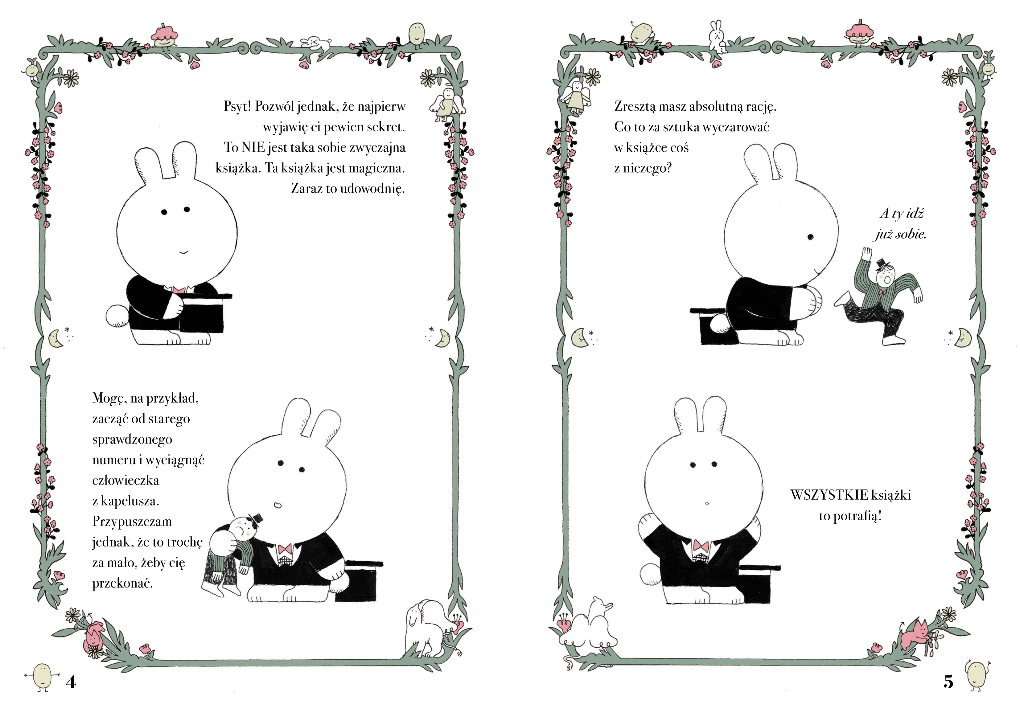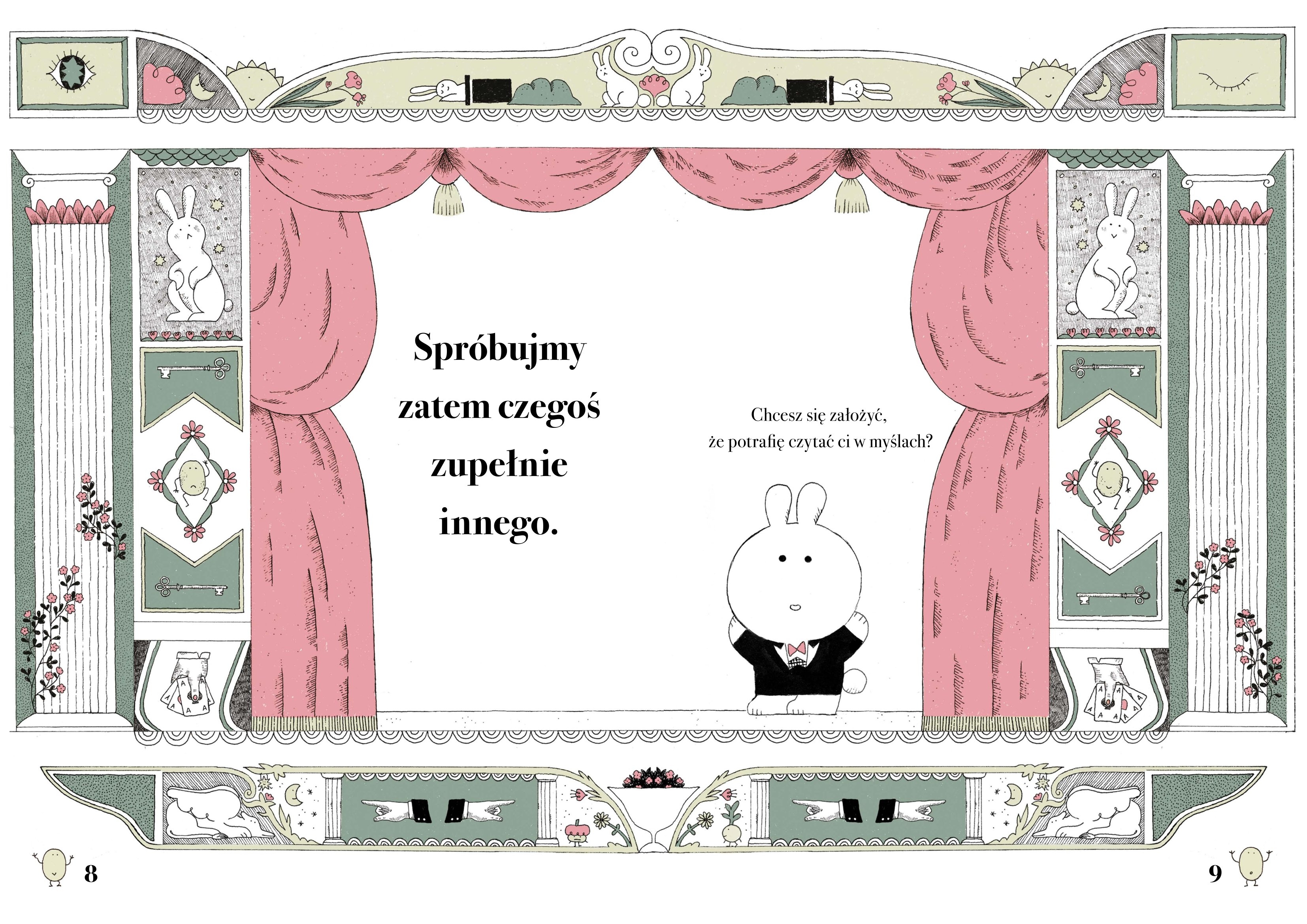 Książka, która czyta ci w myślach to niezwykła, interaktywna książka-zabawa, w której czytelnik staje się uczestnikiem magicznego przedstawienia. Charyzmatyczna iluzjonistka Lady Rabbit zaprasza na scenę i proponuje eksperyment: wybierz w myślach jedną z postaci z widowni, a książka spróbuje ją odgadnąć. Wystarczy podążać za prostymi wskazówkami i… dać się zaskoczyć!