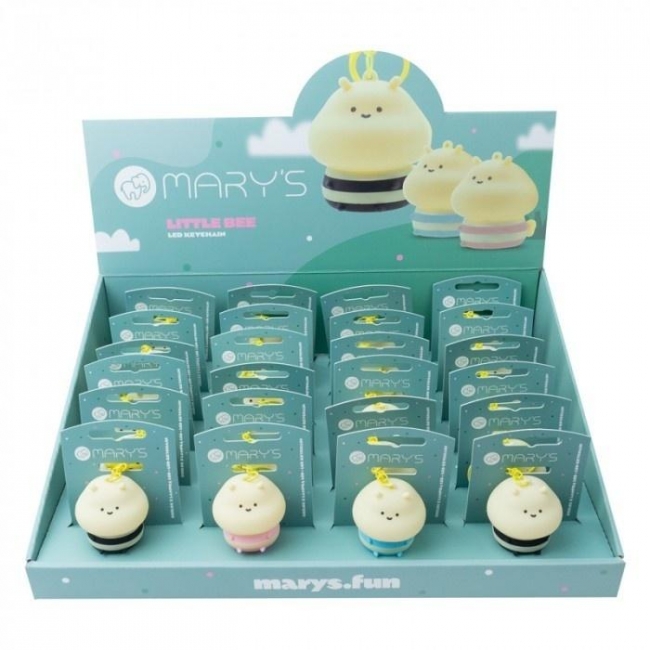 MARY'S breloczek LED mała pszczółka to uroczy i praktyczny gadżet, który sprawdzi się jako dodatek do kluczy, plecaka, piórnika czy dziecięcej saszetki. Po włączeniu brelok świeci ciepłym, białym światłem (3000K), dzięki czemu jest delikatny dla oczu, a jednocześnie wystarczająco jasny, by oświetlić zamek w drzwiach, wnętrze plecaka czy drogę po zmroku.