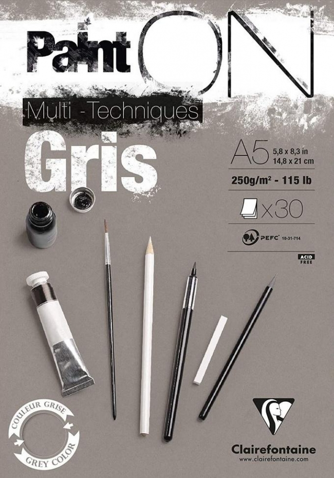 Papier Paint`ON(R) do różnych technik malarskich (Mix-Media), o strukturze lekko ziarnistej. Kolor szary.