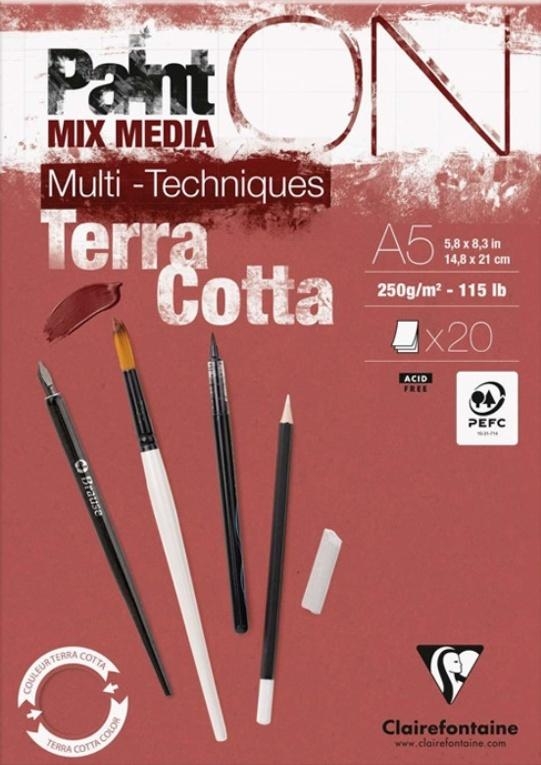 Papier Paint`ON(R) do różnych technik malarskich (Mix-Media), o strukturze lekko ziarnistej. O barwie terakoty.