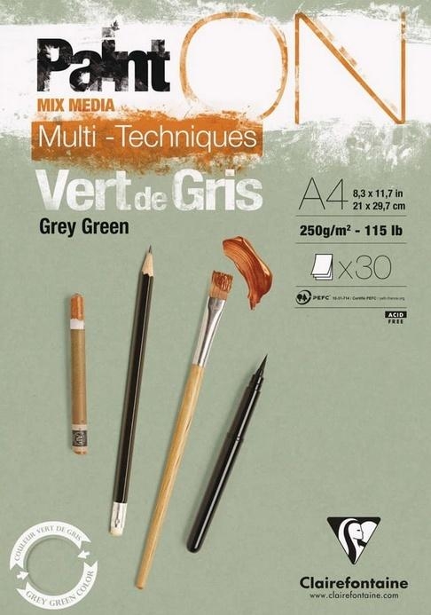 Papier Paint`ON(R) do różnych technik malarskich (Mix-Media), o strukturze lekko ziarnistej. Szałwiowy (zielono-szary).