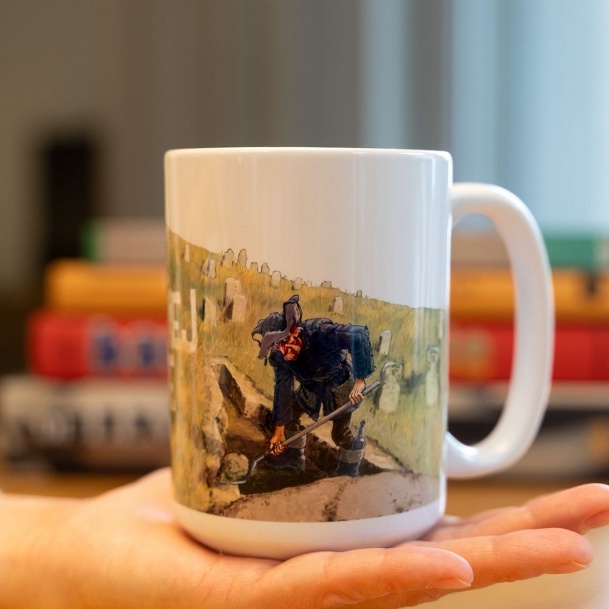 Szczegóły: Kubek duży (440 ml) – Po kawce lepiej się grzebie (Jakub Wędrowycz) (zielony)
