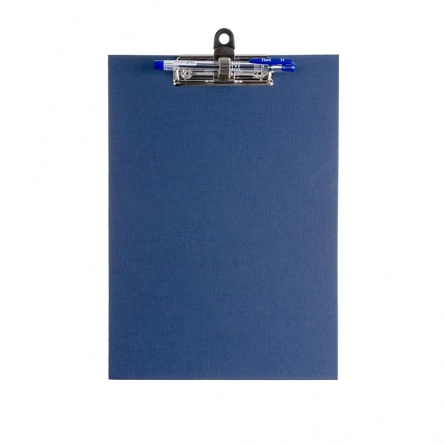 Wykonana z tektury 2,0 mm. Okleina Ecoline mat. Klip wyposażony w uchwyt na długopis. Wymiary w cm: 23x33