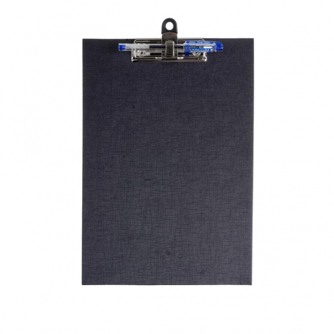 Wykonana z tektury 2,0 mm. Okleina Ecoline mat. Klip wyposażony w uchwyt na długopis. Wymiary w cm: 23x33
