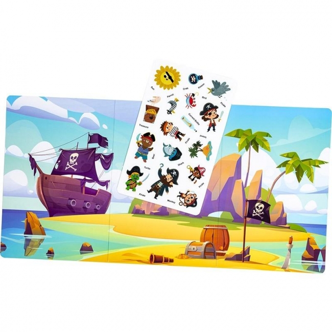 Zestaw silikonowych naklejek wielokrotnego użytku z motywem wyspy piratów.