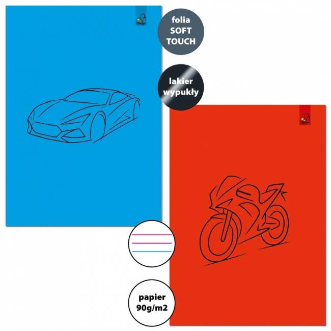 Szczegóły: Zeszyt A4/32K 3-linie kolor 90g Auto Motor (6szt)