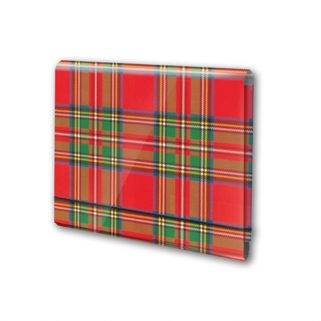 Wykonana z tektury 1,7mm, nitowane boki z okleinowanymi krawędziami. Okleina kratka uszlachetniona błyszczącą folią polipropylenową.Regulowana grubość grzbietu do 4 cm. Wymiary w cm:26x21