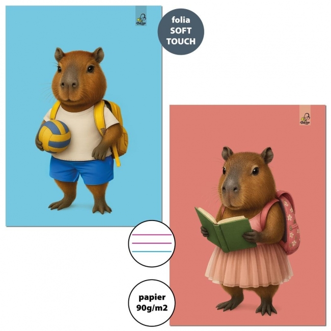 Szczegóły: Zeszyt A4/32K 3-linie kolor 90g Kapibara (6szt)