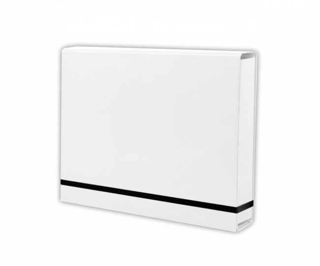 Wykonana z tektury 1,7mm, nitowane boki z okleinowanymi krawędziami, zapinana na płaską gumkę 10 mm. Okleina w jednolitym kolorze uszlachetniona błyszczącą folią polipropylenową. Wymiary w cm; 32X23,5X4,5
