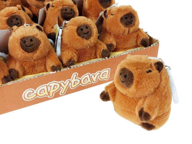 kapibara pluszowa z brelokiem 9,5x8x7cm, z kręcącym się ogonkiem, z piszczkiem, display 12szt; 10x7,5x7,5cm, z naciągiem, 31x27,5x25cm, Box