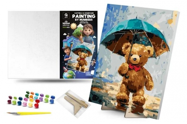 Szczegóły: Malowanie po numerach - Niedżwiadek i deszcz 30x40