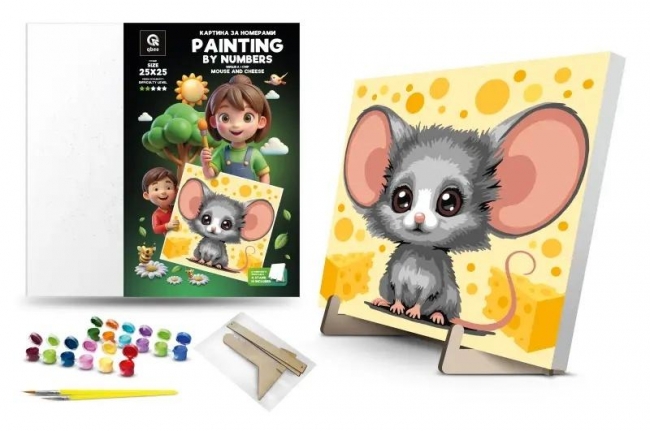 Opis: Malowanie po numerach - Myszka i ser 25x25cm